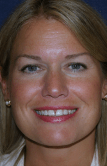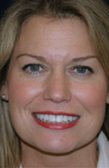3.) Chris, unfortunately, sought cosmetic work elsewhere without a list of essential questions to ask her previous dentist. That dentist lacked knowledge of the golden proportion rule and likely had not undergone the specialized training required to master it. When Chris found us, we were able to transform her smile into something natural and beautiful by applying all three key concepts and taking the time to understand her smile’s unique needs and desires. Since she already had oversized and out-of-proportion veneers, Dr. Neichen, our in-house periodontist, sculpted her gum tissue so Dr. Simon could restore the proper proportions for her new veneers.