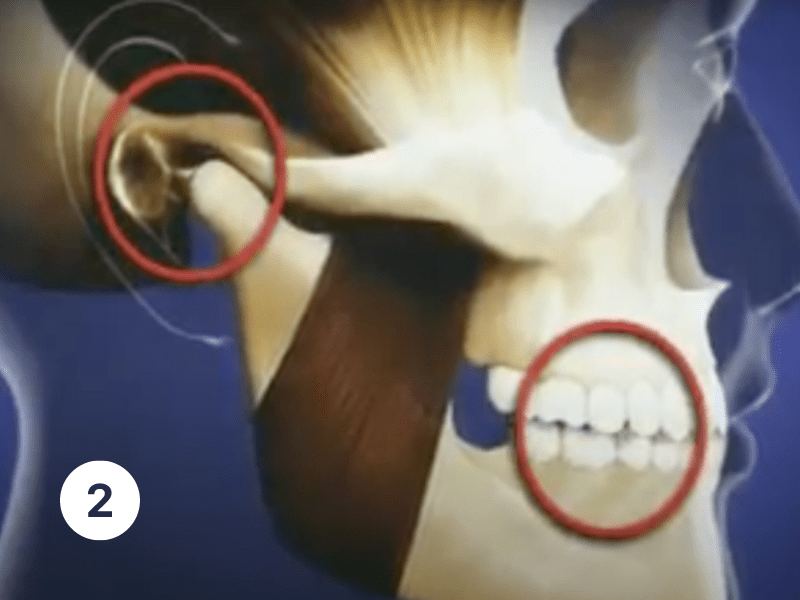 2. With an uneven bite, the jaw stretches to fit the teeth, sometimes causing it to shift out of its socket.